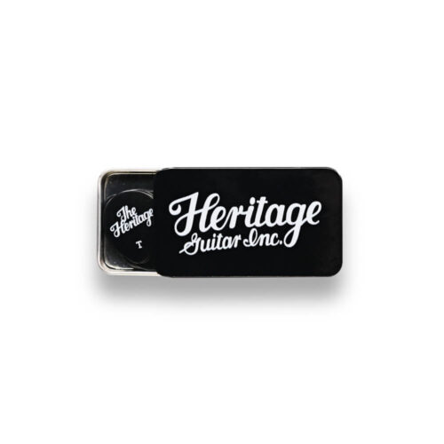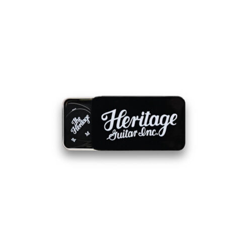 Heritage, Guitars 347 Shape Celluloid Black Vintage Guitar Pick, Medium, 12 Stk im Zinn-Etui