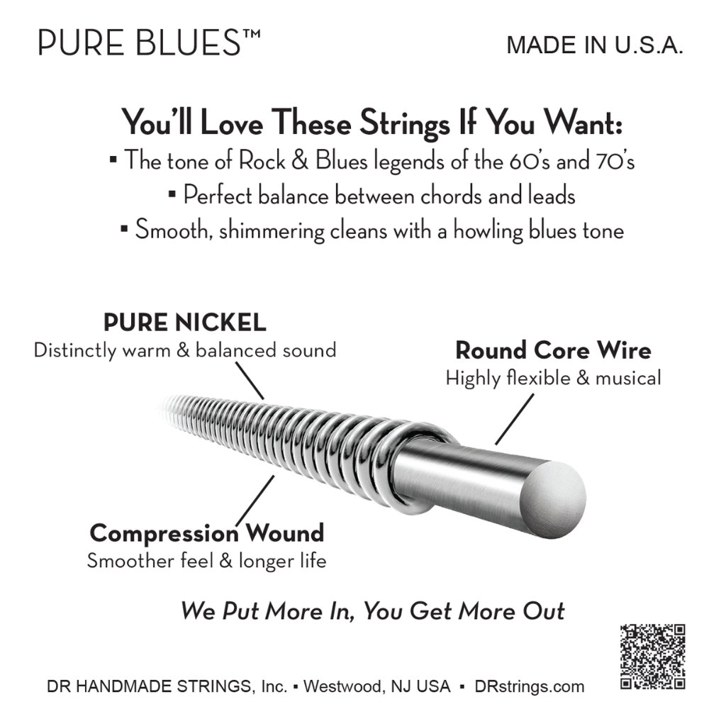 DR, PURE BLUES* – Pure Nickel Electric Guitar Strings: Light 9-42 (3 Pack)