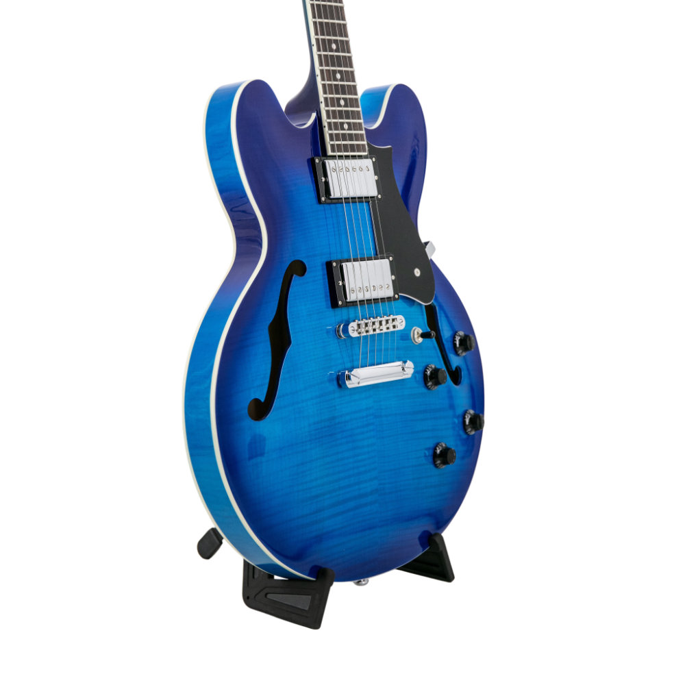 Erhältlich in edlen Finishes wie Sunburst, Royal Blue Burst und Scarlet Red Burst, ist die H-535 nicht nur ein Instrument, sondern ein echtes Statement auf der Bühne. Tune-O-Matic-Bridge, Stopbar-Tailpiece und beschichtete Saiten sorgen für langanhaltende Performance und Zuverlässigkeit, während das 3-lagige Schwarz/Weiß/Schwarz-Pickguard einen Hauch von Vintage-Ästhetik verleiht.