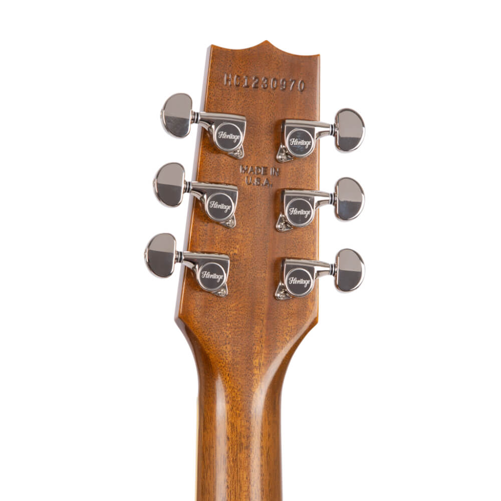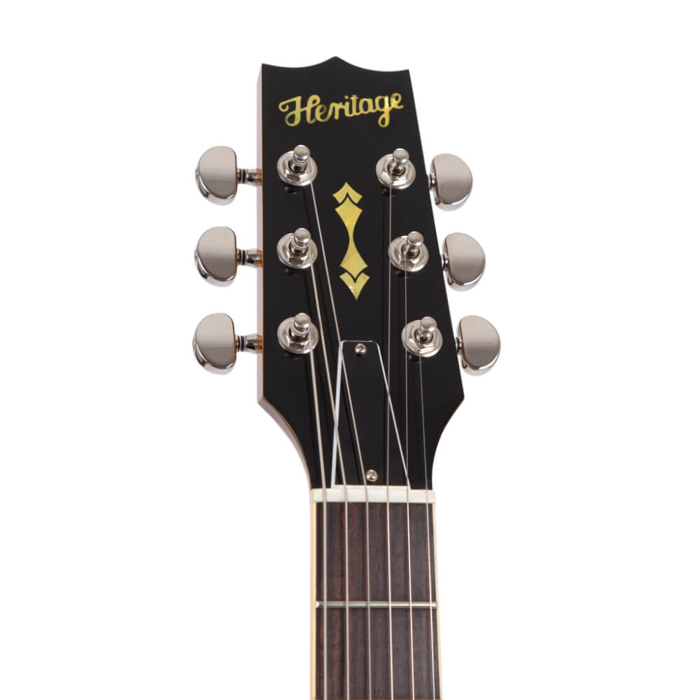 Abgerundet wird dieses bemerkenswerte Instrument durch Custom-Shop-Mechaniken mit dem Heritage-Logo, schwarze Top-Hat-Knöpfe und einem schwarzen Switch-Tip. Die Kopfplatte weist eine neue Größe mit Holly-Furnier auf und ist mit dem kultigen Heritage-Logo und der Twin Arrow-Einlage verziert. Jede H-535 wird mit einem Custom Shop Hartschalenkoffer geliefert, der ultimativen Schutz und Aufbewahrung bietet.