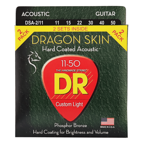 DR, DRAGON SKIN* – CLEAR Coated Acoustic Guitar Strings: Custom Light 11-50 (2-Pack)